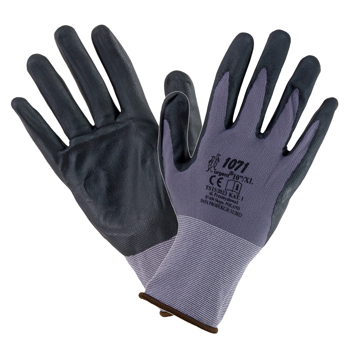 Charakterystyka: Rękawica ochronna wykonana z mieszanki nylonu i spandexu, powlekana w 3/4 ultracienką pianką nitrylu i PU. Zapewnia dobre czucie trzymanych przedmiotów.