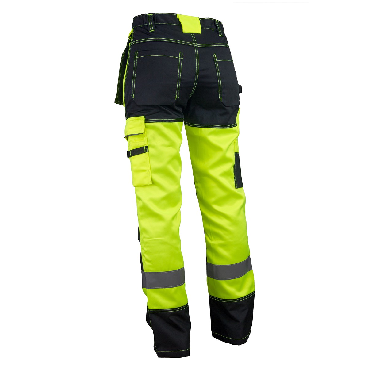 Pantalonii de avertizare URG-715 sunt confecționați dintr-un amestec rezistent de 80% poliester și 20% bumbac, prevăzuți cu inserții și întărituri negre din material Oxford 300D pentru durabilitate sporită. Banda reflectorizantă asigură vizibilitate crescută, fiind potriviți pentru lucru în condiții de lumină redusă sau în medii unde siguranța este esențială. Cu o greutate de 280g/m², acești pantaloni sunt disponibili în mărimi de la 44 la 62, ambalarea realizându-se la carton de 10 bucăți. Recomandați pentru muncitori, tehnicieni sau personal industrial ce are nevoie de pantaloni vizibili, rezistenți și comozi.