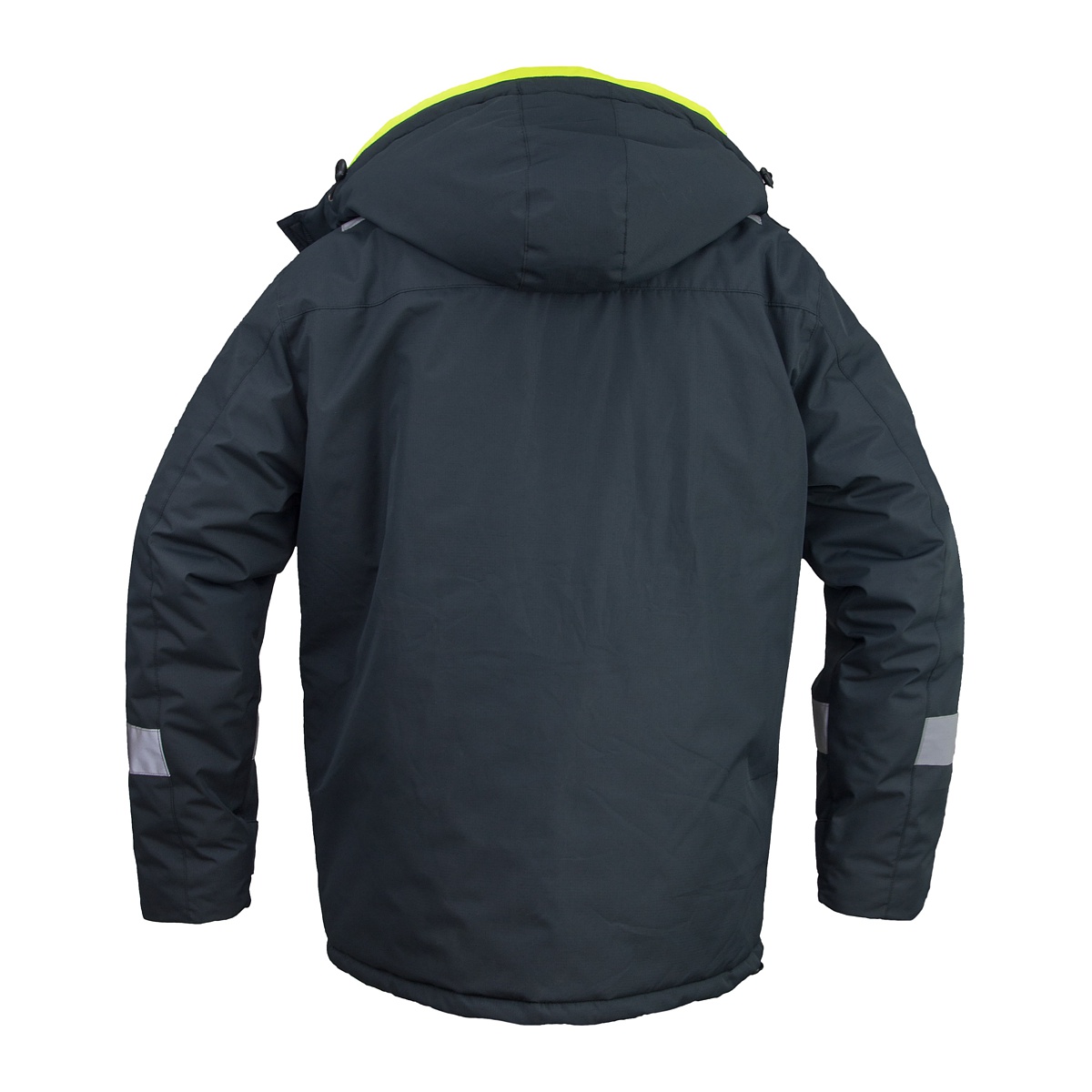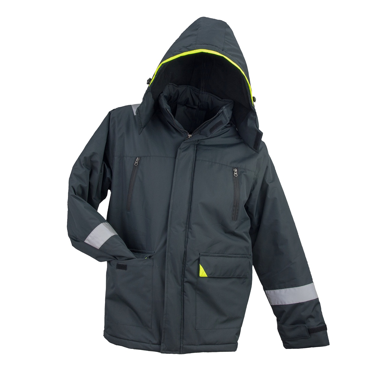 Jachetă bărbațească căptușită, cu glugă detașabilă. Dispune de numeroase buzunare: 2 buzunare inferioare (închise cu velcro) și 2 pe piept (echipate cu fermoare). Pe mâneci, barete cu velcro pentru ajustarea lățimii.