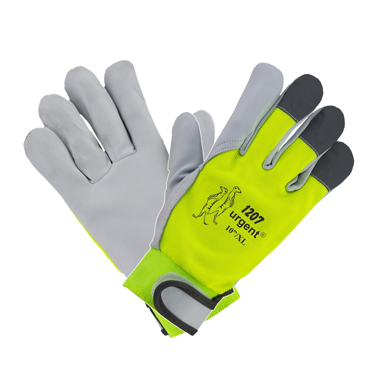 Caracteristică Mănușă confecționată din piele de capră, partea interioară. Partea exterioară realizată din material poliester fluorescent, vârfurile a trei degete din material reflectorizant. La încheietură elastic cu velcro.