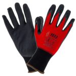 Caracteristică Mănușă de protecție fără cusături, confecționată din amestec de nylon și spandex. Acoperită, pe partea exterioară și vârfurile degetelor, cu nitril spumat.
