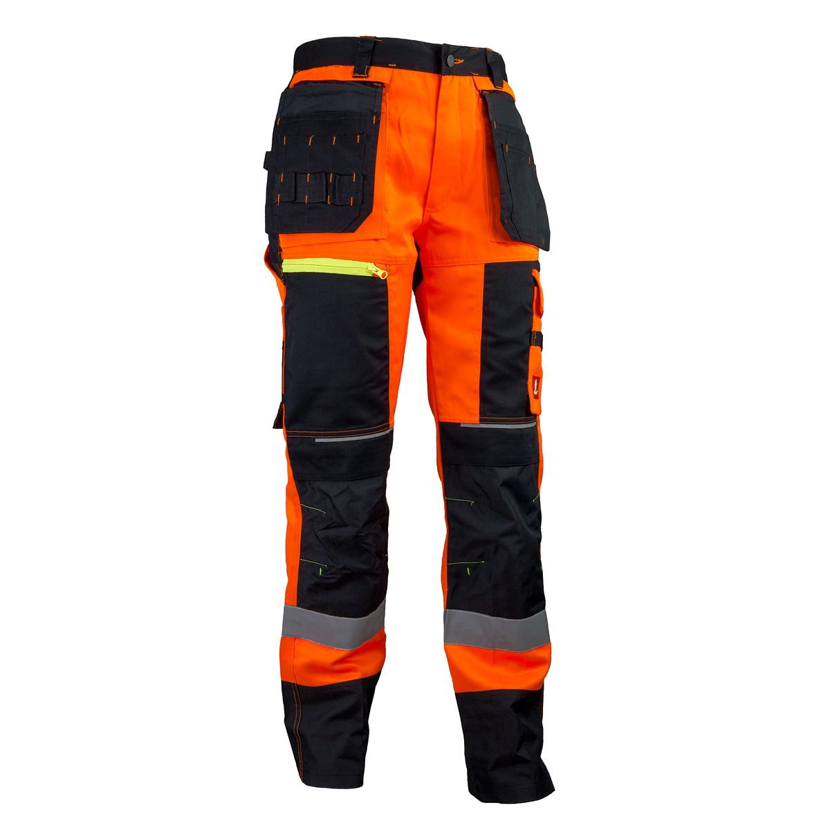 Pantalonii până în talie URG-714 sunt confecționați dintr-un amestec robust de 80% poliester și 20% bumbac, prezintă inserții negre și întărituri din material Oxford 300D pentru durabilitate suplimentară. Sunt prevăzuți cu bandă reflectorizantă pentru vizibilitate sporită în condiții de lumină redusă, având o greutate de 280g/m². Se încadrează în Categoria I de protecție (oferă protecție împotriva factorilor atmosferici neextremi și al leziunilor mecanice superficiale). Disponibili în mărimi de la 44 la 62, ambalarea se realizează la carton de 10 bucăți. Ideali pentru muncitori, tehnicieni sau personal industrial care are nevoie de pantaloni rezistenți, comozi și vizibili.